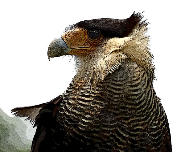 Os Falconiformes possuem uma única familia: Falconidae que abrigam o caracará e osfalcões. Os falcões também são aves de rapina como os gaviões (que são de outra Ordem). Diferem deles pois abatem as presas partindo a coluna vertebral com o bico forte. Já o caracará é um generalisra que se alimenta dos mais variados itens. Gostaria de saber mais sobre a Ordem e as aves de rapina? Conheça o Site Aves de Rapina do Brasil
